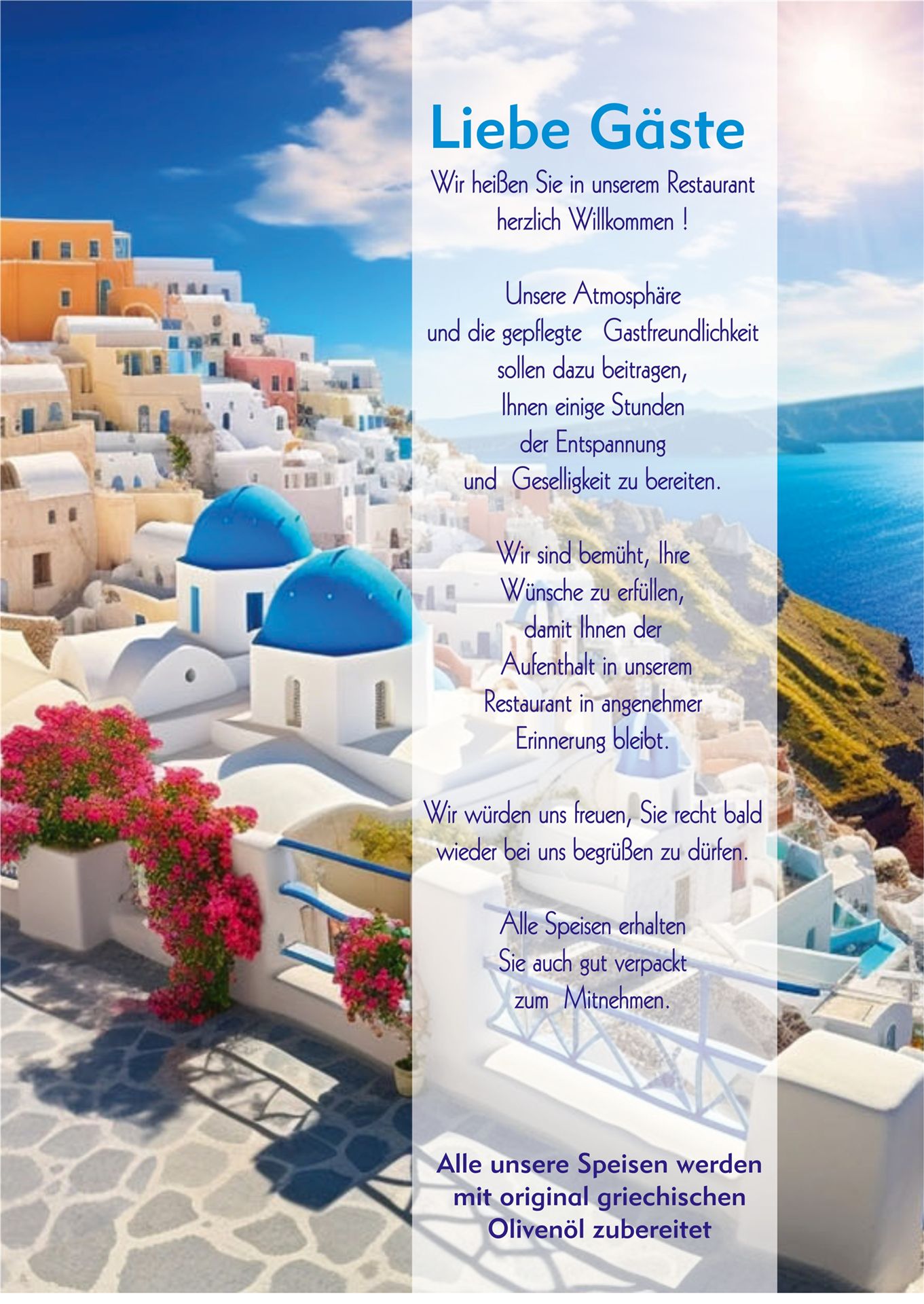 Kommen Sie und lassen Sie sich in unserem gemütlichen Restaurant Olympia in Nordhorn mit griechisch, mediterraner Esskultur und diskreter griechischen Musik verwöhnen.